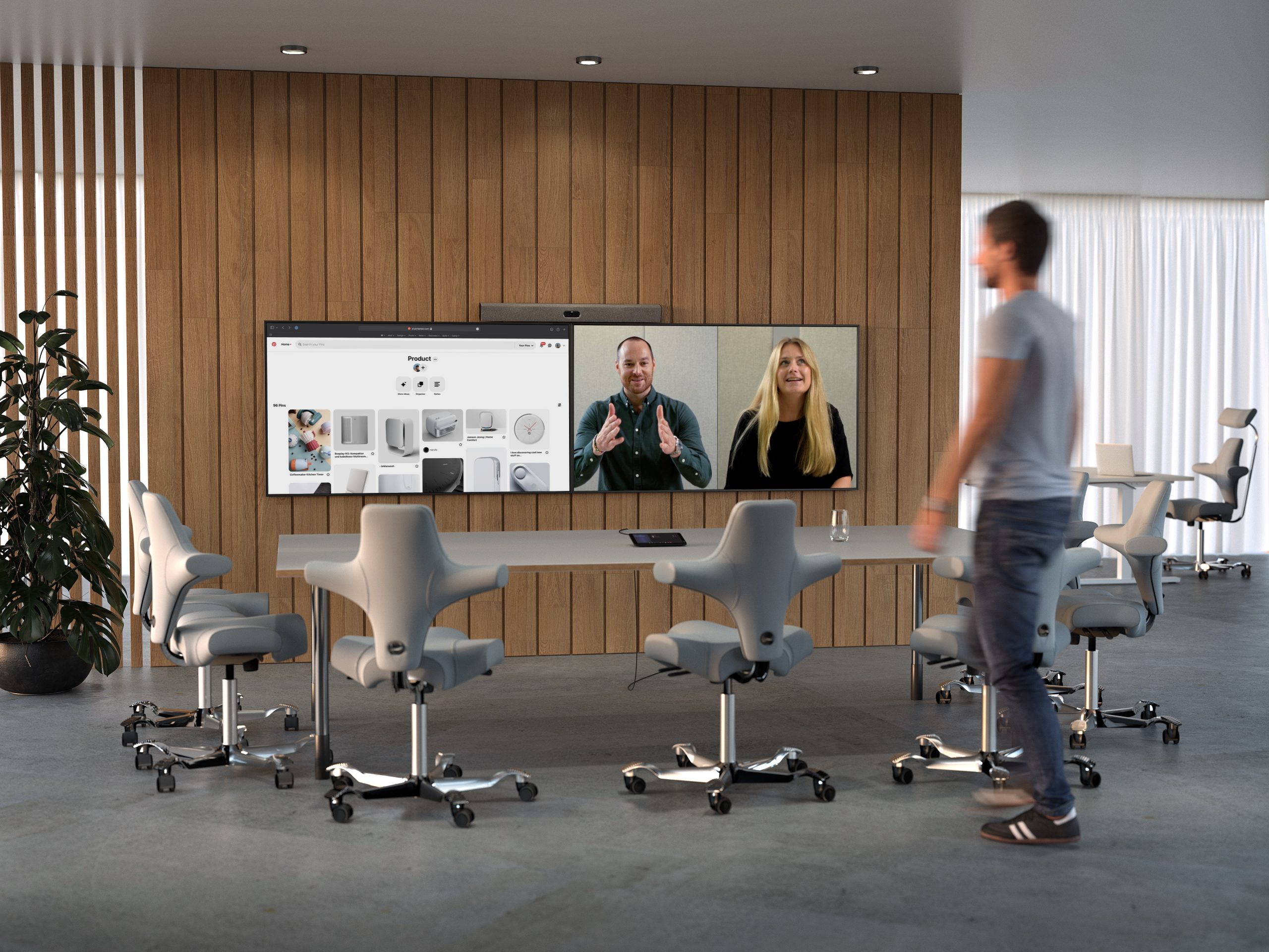 Neat Bar Pro verpakt een stapel technologie in een eenvoudig en elegant slimline-apparaat. Het kan drie grote schermen aansturen, zodat u mensen en inhoud samen duidelijker kunt zien. Tegelijkertijd zorgen de superieure audio- en videokwaliteit voor een ongelooflijk meeslepende, natuurlijke vergaderervaring in elke ruimte.