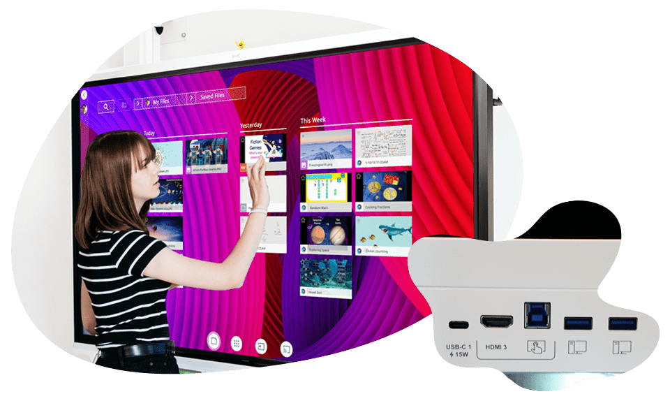 Uw SMART Board MX-display is klaar als u dat bent. Meld u aan en krijg toegang tot uw cloudopslag, apps, lessen, favorieten en aangepaste widgets. Een intuïtief display en gebruiksvriendelijke functies helpen docenten de focus op het lesgeven te houden, niet op de techniek.